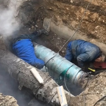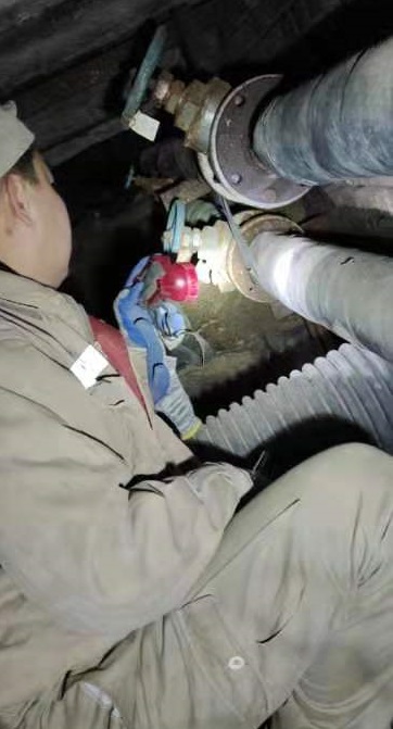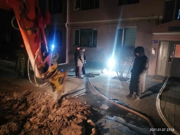 副经理张国梁、运营所长冯俊、检修主任贾超及保驾单位第一时间赶往漏水现场。此时天色已晚,由于室外气温较低,如果安排连夜抢修,将影响约43万平方米的用户正常用热,决定次日进行抢修。