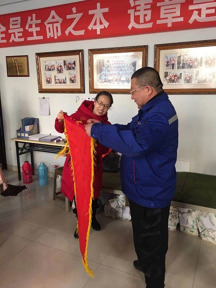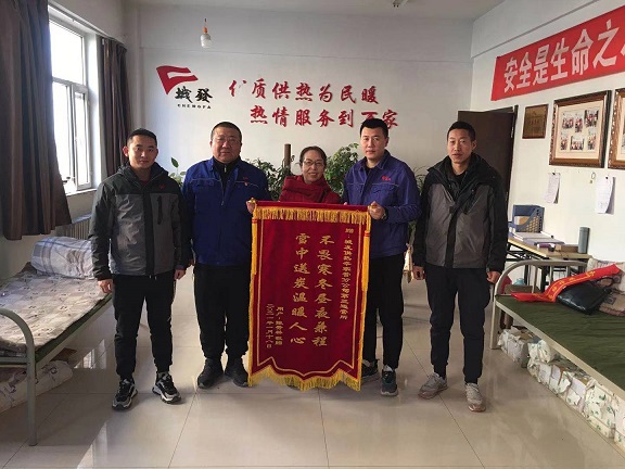 1月21日上午,辛家营分公司供热辖区博园小区8号楼3单元201的住户送来了一面写着“雪中送炭温暖人心,不畏寒冬昼夜兼程”的锦旗,当面表达了对辛家营供热分公司运营三所所长刘海燕、白金蓓以及运行和客服相关人员的感谢!