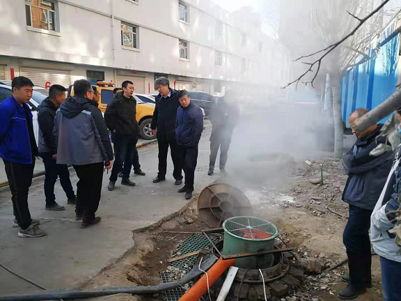 由于该位置特殊,一旦泄漏量增大,将威胁热源、循环泵正常运行,后果不堪设想。为尽快处理漏水点,城发公司副总经理吴利勤、总工程师胡月在,三合村分公司经理张学文现场指挥,邀请内蒙古蒙博电力科技有限公司进行抢修,该公司多次为电厂及大型热源厂抢修,经验丰富可靠。