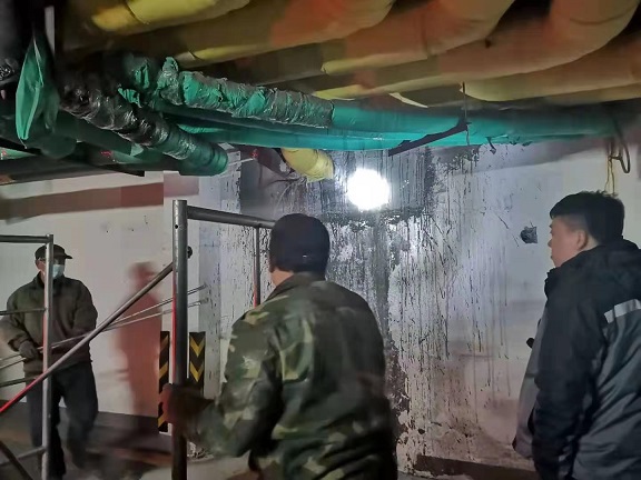 2月11日农历大年三十早,城发桥靠供热分公司一所接到金汉御园小区物业反映地库3号楼墙面有跑水现象,怀疑二次管网破裂,为了保证春节期间正常供热,所内工作人员当即奔赴现场。