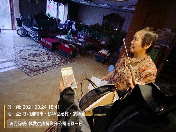 通过入户走访、现场测温、开展宣传咨询等方式,主动走进居民家中,听民声、问冷暖、解民忧、真正把供热服务工作往细里走,往深里做,往实处落,广泛征求和听取用户对供热工作的意见和建议,帮助用户现场解决供暖存在的问题,保障老百姓温暖过本采暖季。
