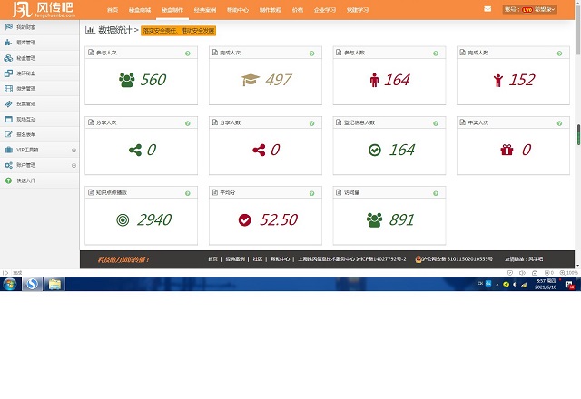 该在线答题系统具备数据统计功能,能够实时显示参赛者的人数和登记信息,参赛者的答题成绩排名,参赛者的成绩分段分布图等信息。截至6月10日上午,已有登记信息人数为164人,参与人次为560次,知识点传播数为2940。
