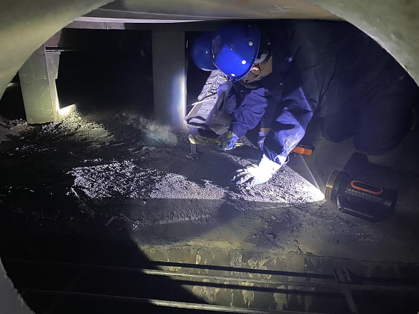 在检修中,王文斌在风室外监督现场情况,并随时与内部人员沟通,操作室监盘人员密切注意4号炉参数,防止人员误操。检修结束后,王文斌清点人员及工具,关闭各检查门,再将正在维修警示牌更换为停止运行指示牌,并将检查处理情况汇报调度后,演练结束。