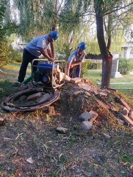 科尔沁路保密局段工程为更换DN1000阀门2台,跨越式三通1对,施工前需完成泄水工作,该段施工位置特殊,难度较大,加之工期紧张,在检修车间制定泄水方案后,关闭施工路段前后两端阀门,从前段DN1200阀门井内开始泄水,泄水工作历经十天,于9月12日完成。