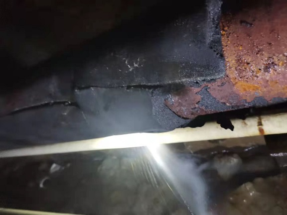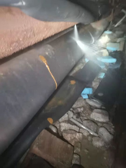 3月15日20:00,桥靠第二运营所客服人员接到一干热力站一用户电话反映楼道里有异响和水流的声音。检修主任董冬立即安排检修师傅与客服人员到达现场进行摸排,经检查发现是实践杂志社南楼一单元地沟主管道DN100跑水。