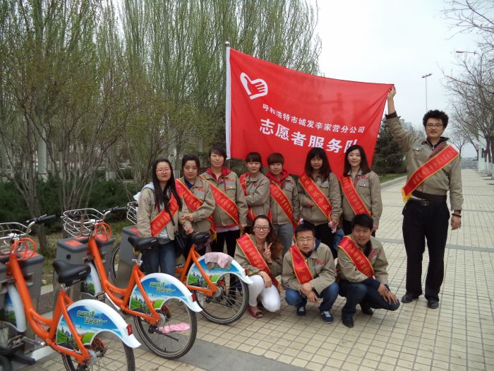 上午九点半,在团支部的带领下,由分公司各部门的12名在岗青年团员组成的志愿者服务队,来到呼和浩特市公用自行车的三个停放点:市政府停放点、第二十九中停放点、巨海九区停放点。对其三个停放点自行车的卫生进行清扫,清扫的主要任务是:车辆的摆放整齐、自行车和读卡机表面的擦拭、停放点周边环境的清扫等。