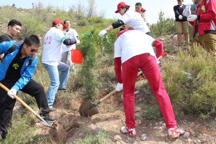 植树活动现场,来自公司机关、桥靠分公司、三合村分公司、金桥分公司、辛家营分公司的32名青年志愿者和其他直属团委的志愿者们参加了此次活动的启动仪式。随着团市委书记成红亮同志宣布活动启动,公司青年志愿者们在团委副书记郭振宇的统一带领下,有序的加入到植树活动的行列中,个个热情洋溢、干劲十足,有的运树苗,有的挥锹,有的扶树,有的培土,还精心地把土踩实,并为它们浇灌生命之水。各个环节衔接有序,样样做得认真到位,个个忙得满头大汗,到处都是忙碌的身影和劳动的欢声笑语。经过大家一上午的共同努力,种下了28株充满生机和希望的树苗。