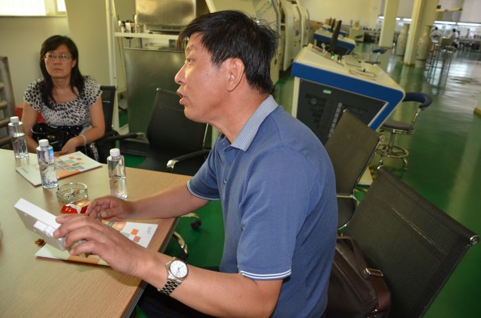 在详细了解了生产线的每一环节及目前热表厂的生产能力后,城发公司总工办主任王建忠介绍了自热表厂成立以来的基本情况及目前所安装热计量装置的功能及合理性,热表厂技术人员现场演示了热计量装置工作流程。