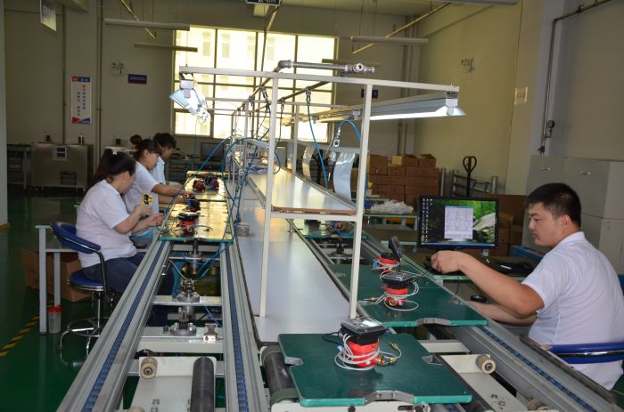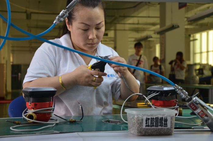 在差速链自动操作台上组装热计量表。李波摄