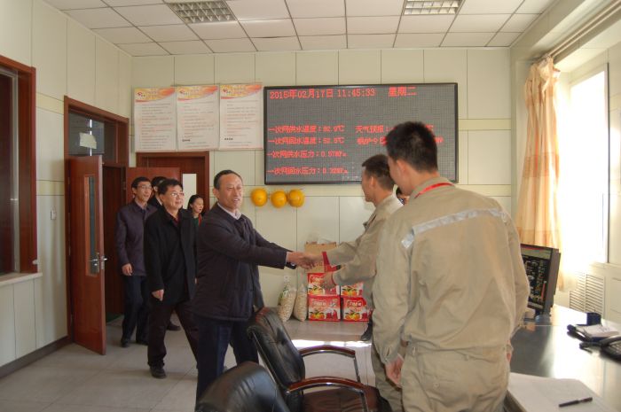 腊月二十九,党委书记、总经理张瑞平,党委副书记、工会主席张永,党委委员、副董事长杜雄勇,党委委员、副总经理史继文4人率队,分别到四个供热分公司,深入车间、运营所、收费大厅、热力站,对一线员工进行了慰问。(文/亚利)