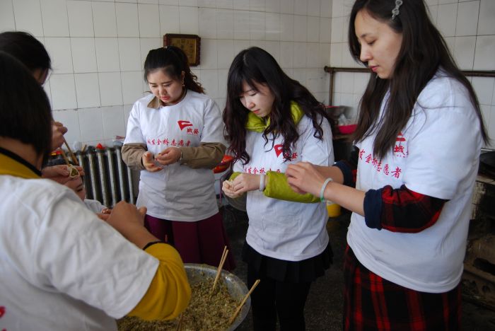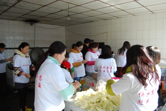 白庙子敬老院现住着50余位孤寡老人,他们大多身体状况较差,行动不便。走进敬老院里,志愿者们热情地与老人们聊天、唠家常,详细询问老人们的生活情况和身体健康情况,并为每一位老人发放了水果。现场另一边,其他志愿者也忙开了,拌馅儿、择菜、和面,准备给老人们包饺子,大家忙的不亦乐乎,让老人们切身感受到了温暖。同时,不怕脏、不怕累的志愿者们,帮助老人们整理床铺、洗衣服,将敬老院室内室外的卫生打扫得干干净净。