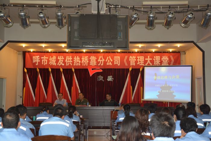 2015年6月25、26日,桥靠分公司组织全体环节干部、后备干部参加《管理大课堂》培训活动。目的是提高环节干部的管理思维和管理能力,打造一支管理水平过硬的团队。此次培训请到了内蒙古工业大学长青教授、符亚男副教授。