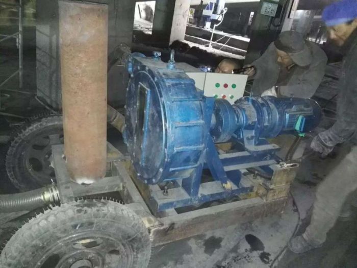沉淀池淤泥稀则似水,由于它的特殊性,导致市面上绝大部分输送设备无法使用。即使使用泥浆泵,其有效行程也不过20米,在这样的距离上,司炉三车间狭小的空间根本无法盛接这么大量的泥沙。1月5日,车间拉来一台软管泵,准备实验用软管泵直接将泥沙由沉淀池打到渣场。