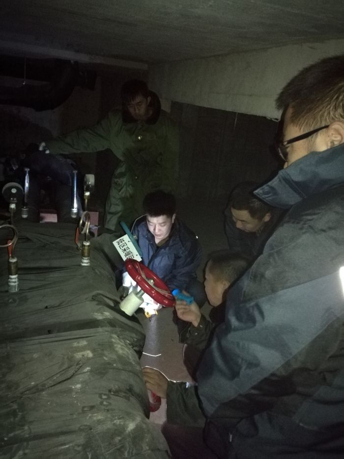 在进行实际调网过程中,调网人员不断进入各栋楼的管沟中进行调试,同一栋楼还要进行反复多次调。香榭小区的进楼管道敷设在负一层的夹层中,而进入夹层的通道口大部分设置较高,口较小,大家只能爬着进入通道,里面各种管道纵横交错,只能弯腰行走。在管沟中,王星亮一会儿扭动阀门,一会儿又测量温度、查看表计,一边操作一边为大家详细讲解,将理论知识与实际操作有效结合起来,现场的每一名调网人员都认真观看,并亲自动手进行实际操作,管沟中不时传出阵阵讨论声。
