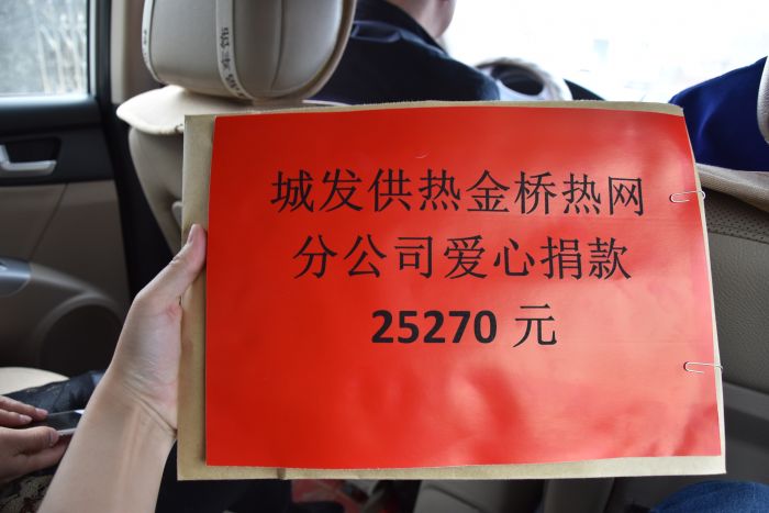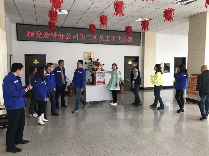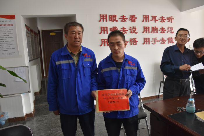 2017年4月6日上午十点,金桥热网分公司为运营二所困难职工王飞家庭举行了爱心捐款,短短20分钟时间里共募集爱心捐款25270元,收费中心杨春燕主任的儿子也捐出了自己的压岁钱200元。分公司第一时间把爱心捐款交到了王飞手中。